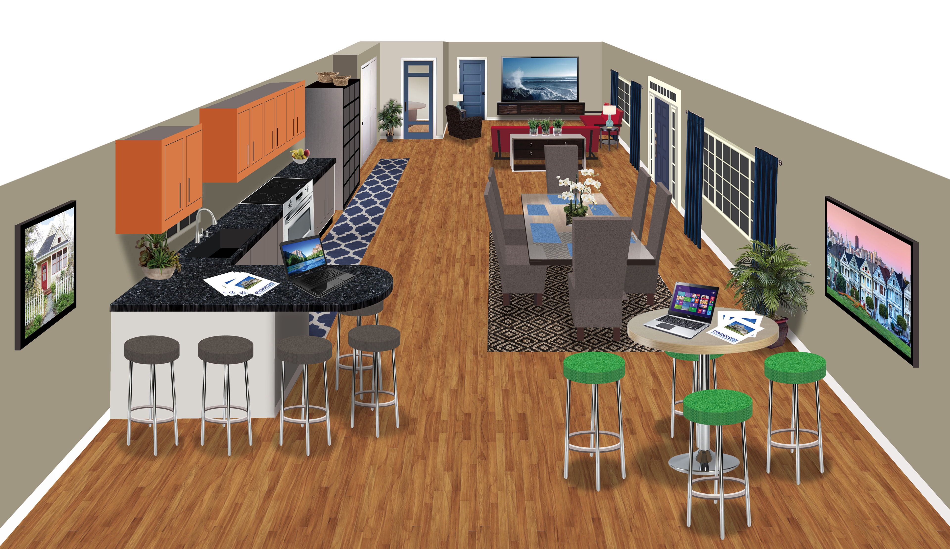 Large-scale banners & backdrops and/or trade show booths, as well as POS in-store displays.